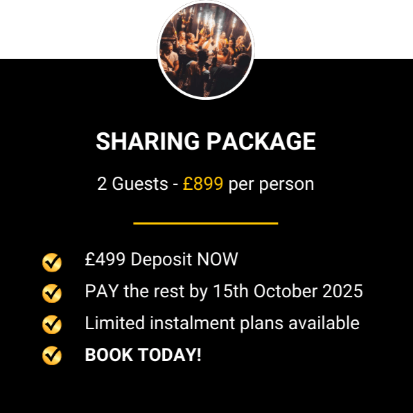 Lock in your spot for just £499 and spread the rest across 3 easy flexible payment plans... because experiences like this should be accessible, not overwhelming.